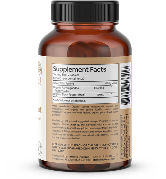 Organic Ashwagandha Root with Black Pepper | Vegan 1360 mg